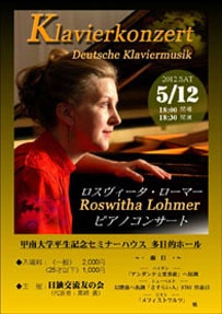 Roswitha Lohmer a joué un récital au Vénézuela, qui a été organisé par l‘institut Humboldt en coopération avec l‘ambassade allemande à Caracas. Elle joua le Concerto pour Piano N°5 de Beethoven, ensemble avec l‘Orchestre Symphonique de Maracaibo, dans un concert mémorial pour l‘extraordinaire pianiste vénézuelienne Teresa Carreno.